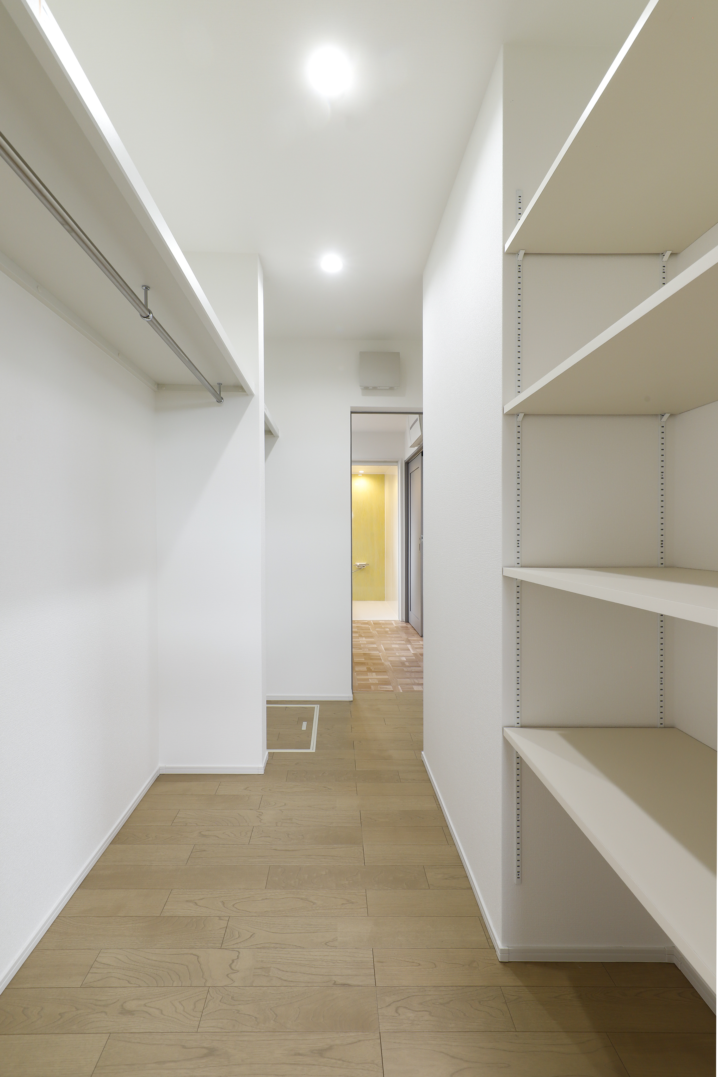 玄関からシューズクローク、ファミリークローク、脱衣室へとつながるおかえり動線を採用。荷物の片付けや洗濯など、毎日の家事がラクに回るよう工夫されています。家族みんながストレスなく動ける快適な間取りです。