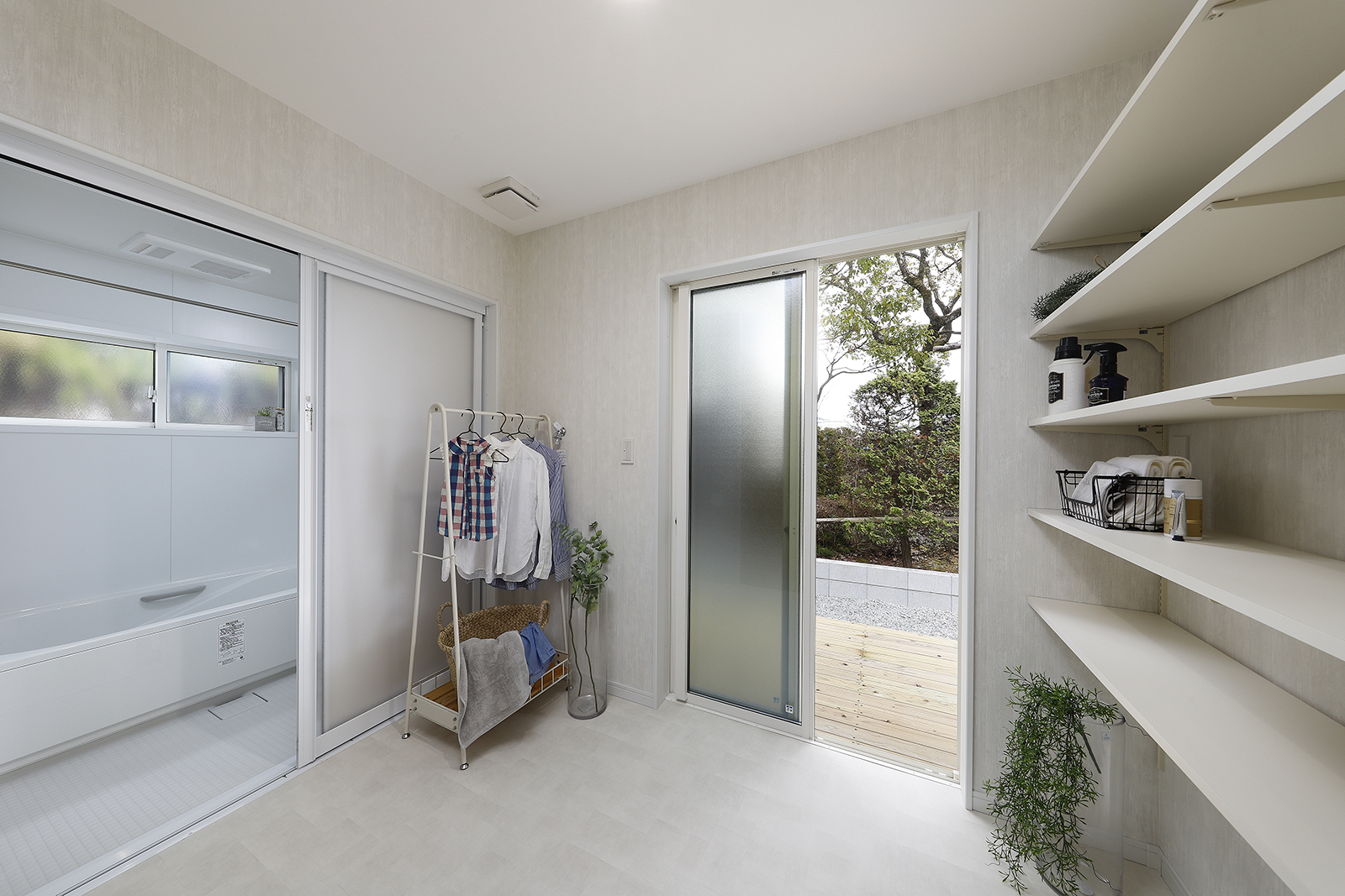 ランドリールームを備えた間取りで、洗う・干す・畳むが一カ所で完結。家事の時短はもちろん、雨の日や花粉の季節でも安心の住まいです。