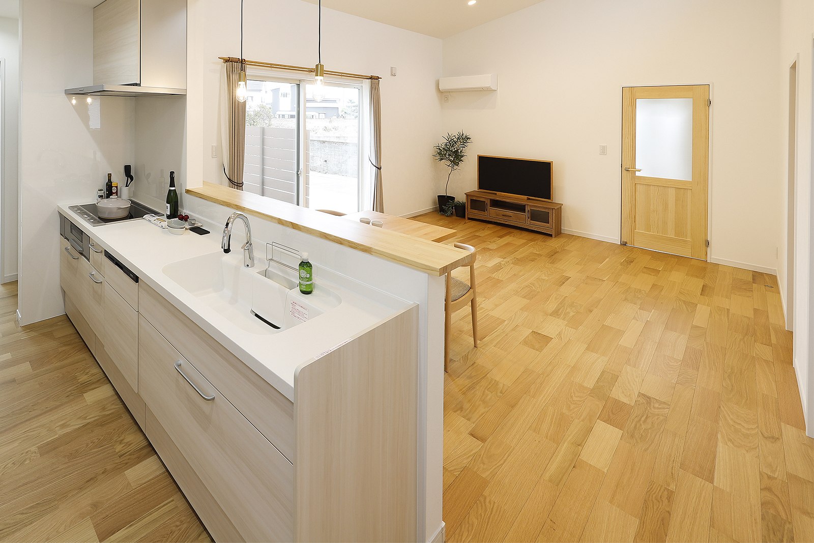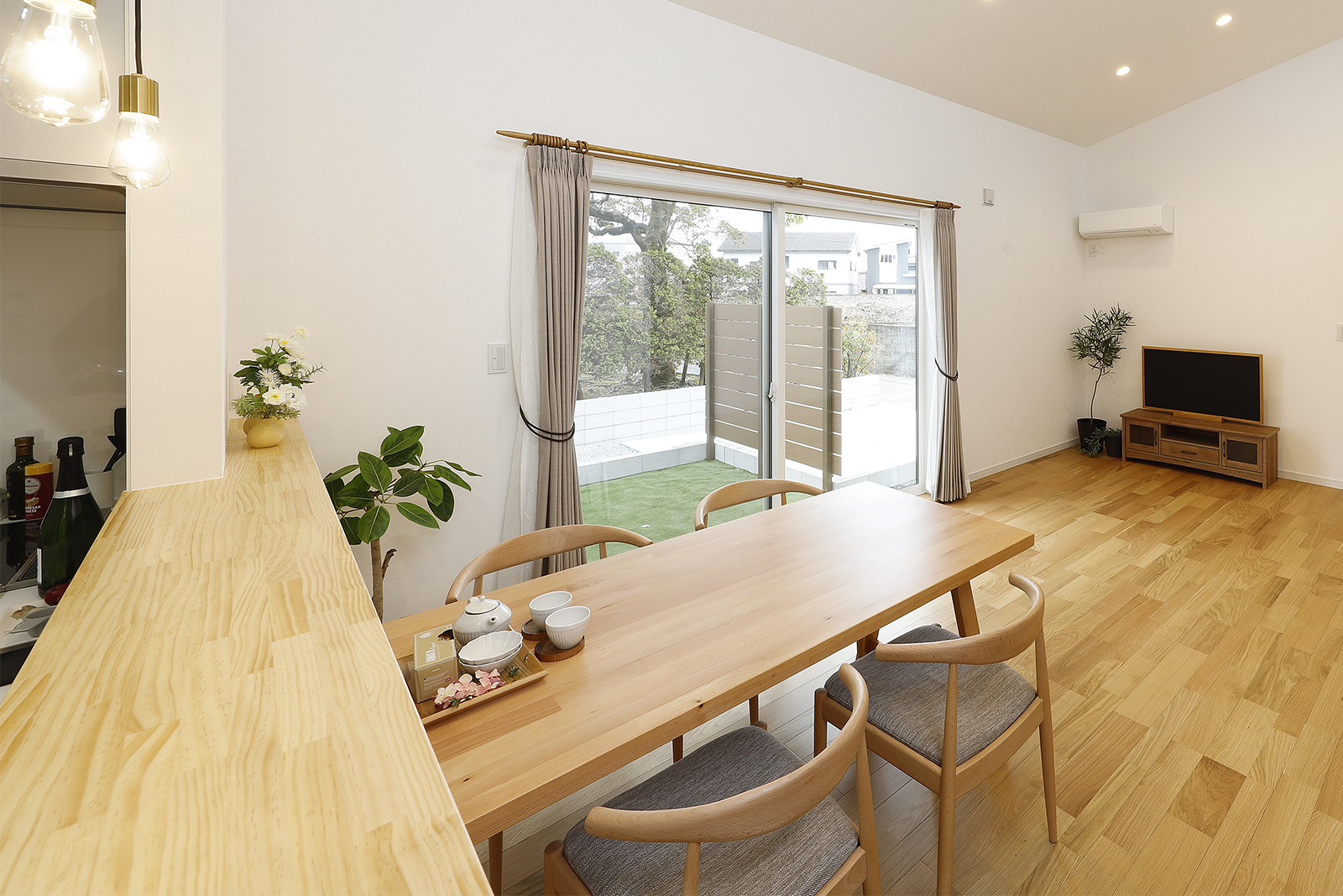 加えて広目のLDKと和室のつながり、カウンター付きキッチンなど、家族が自然と集まりたくなる工夫も随所に。