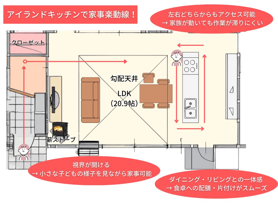 どの空間へも移動しやすく、忙しい毎日の家事負担を軽減します。