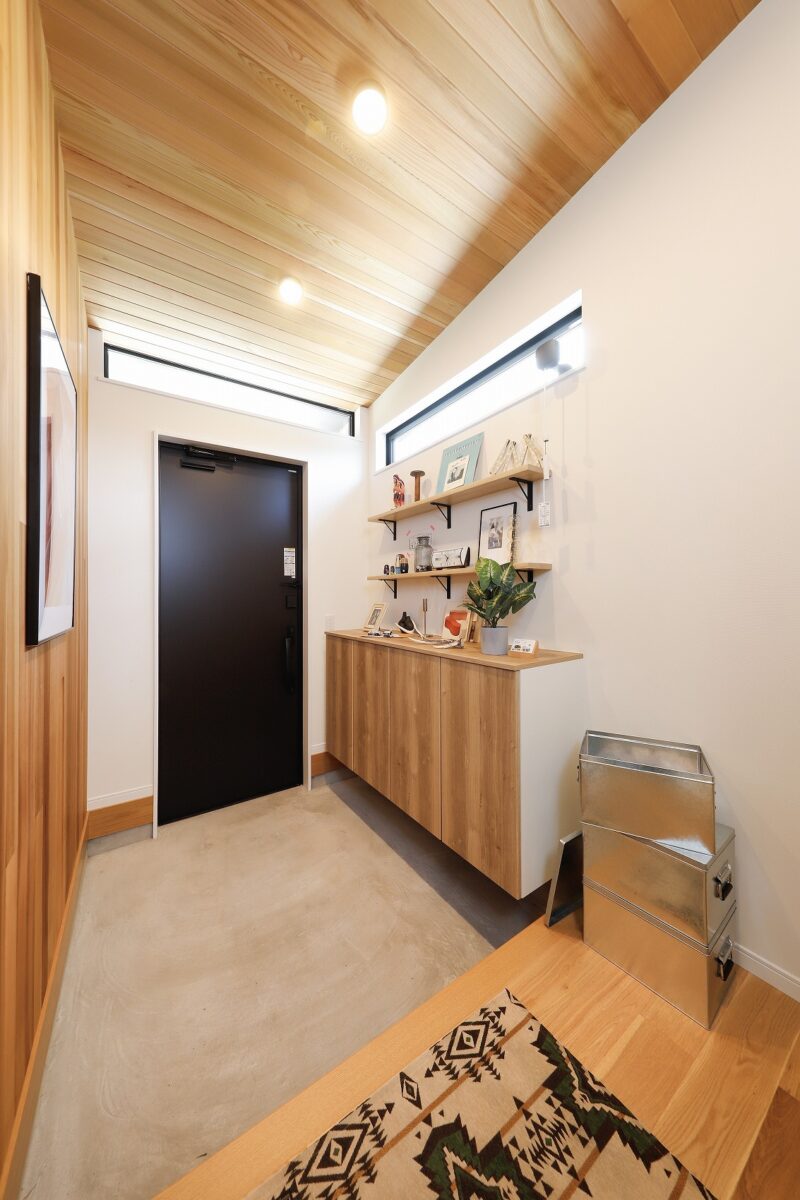 玄関に飾り棚を設けることで、お気に入りの雑貨や季節のインテリアを楽しめます。