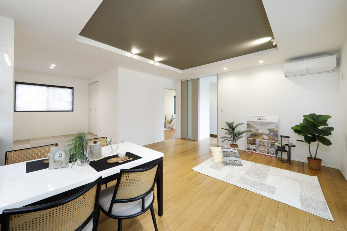 リビングは広々21.6帖!折り上げ天井を施すことで、さらに開放感をプラス。
