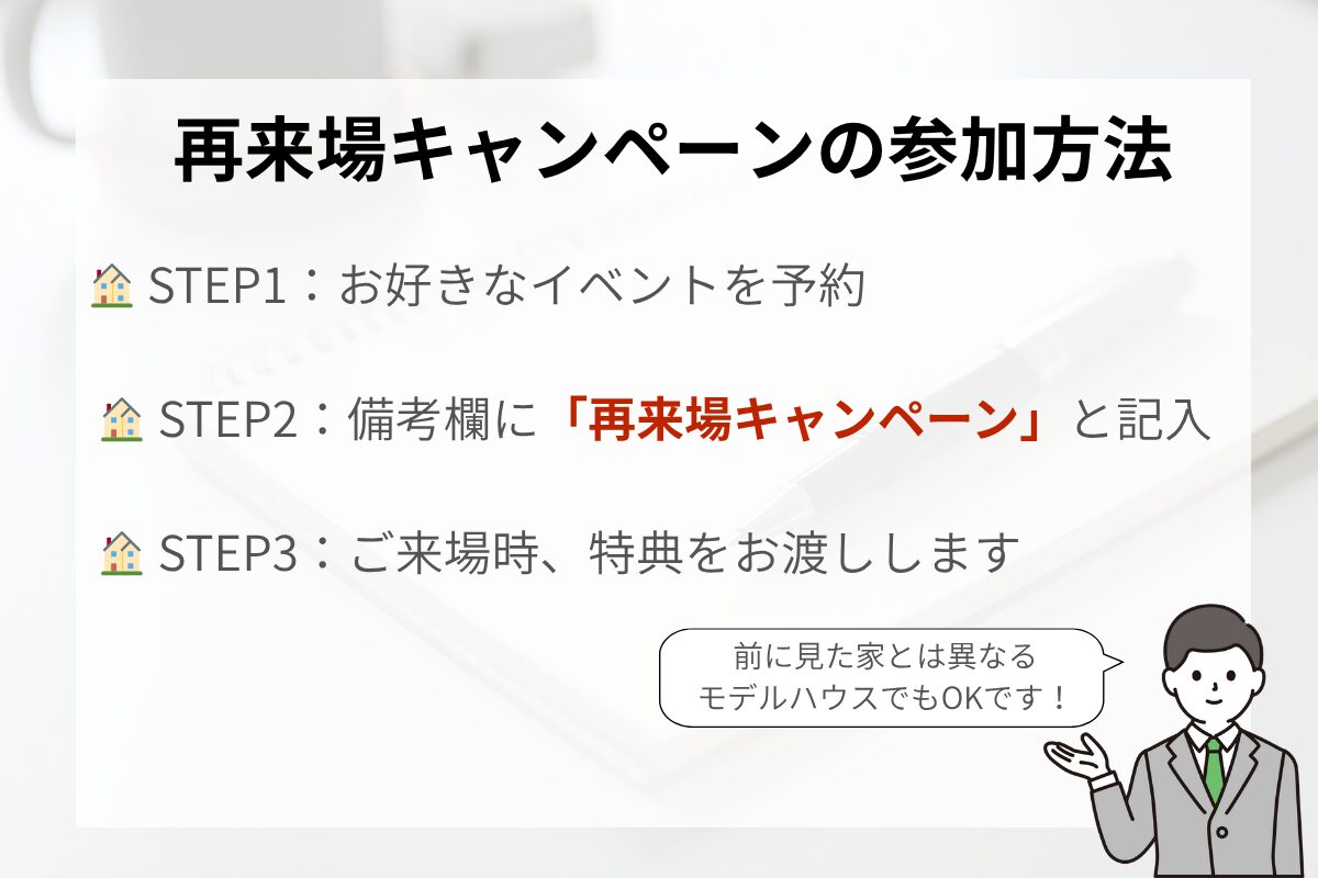 【再来場キャンペーン】もう一度見て・聞いて納得!ご家族の家づくりを次のステップへ―