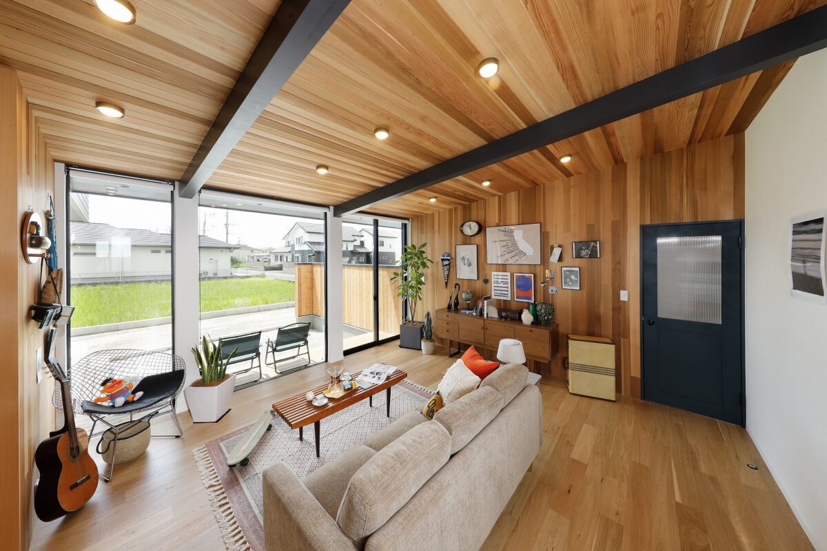 木のあたたかみを感じるレッドシダーの外観・内装に、家の真ん中には家族が集う中庭。