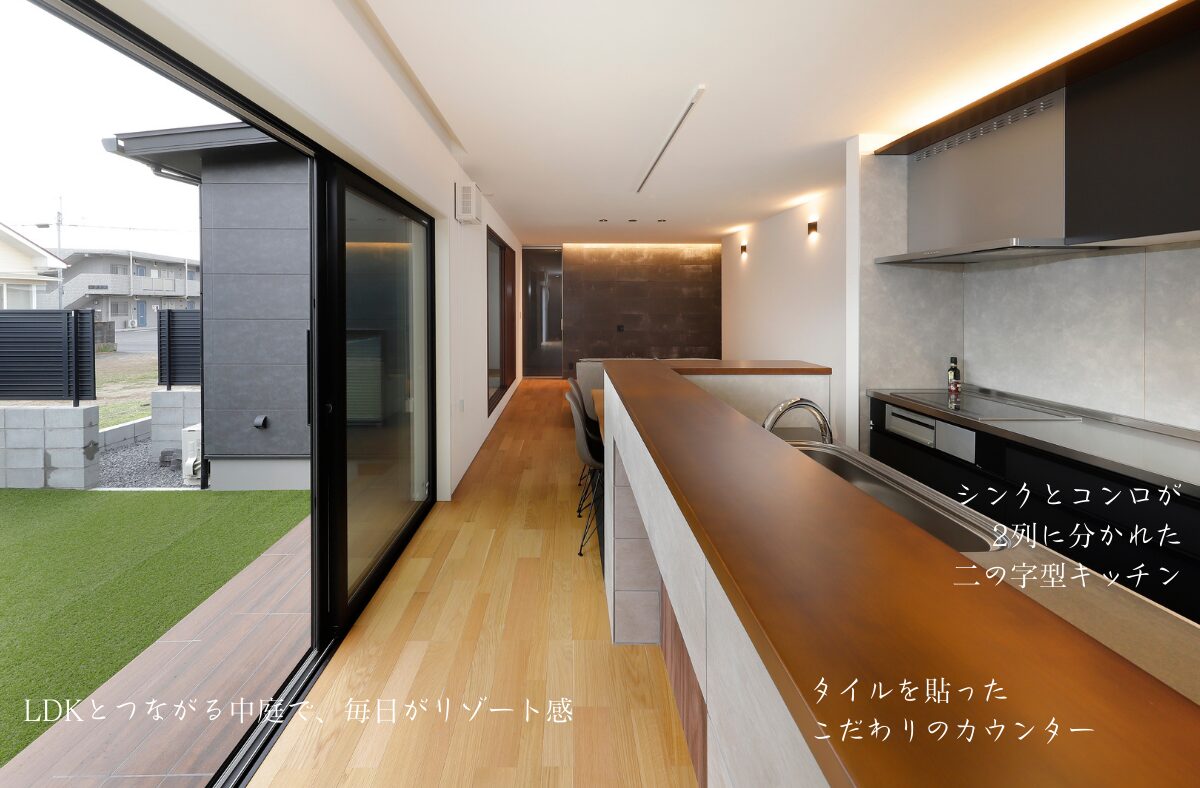 LDKと庭が一体になる、コの字ならではの開放感