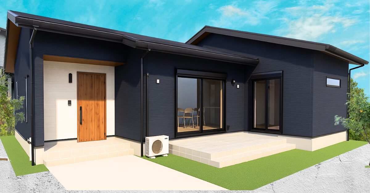 ③ ネイビー×木目の“都会派モダン平屋”