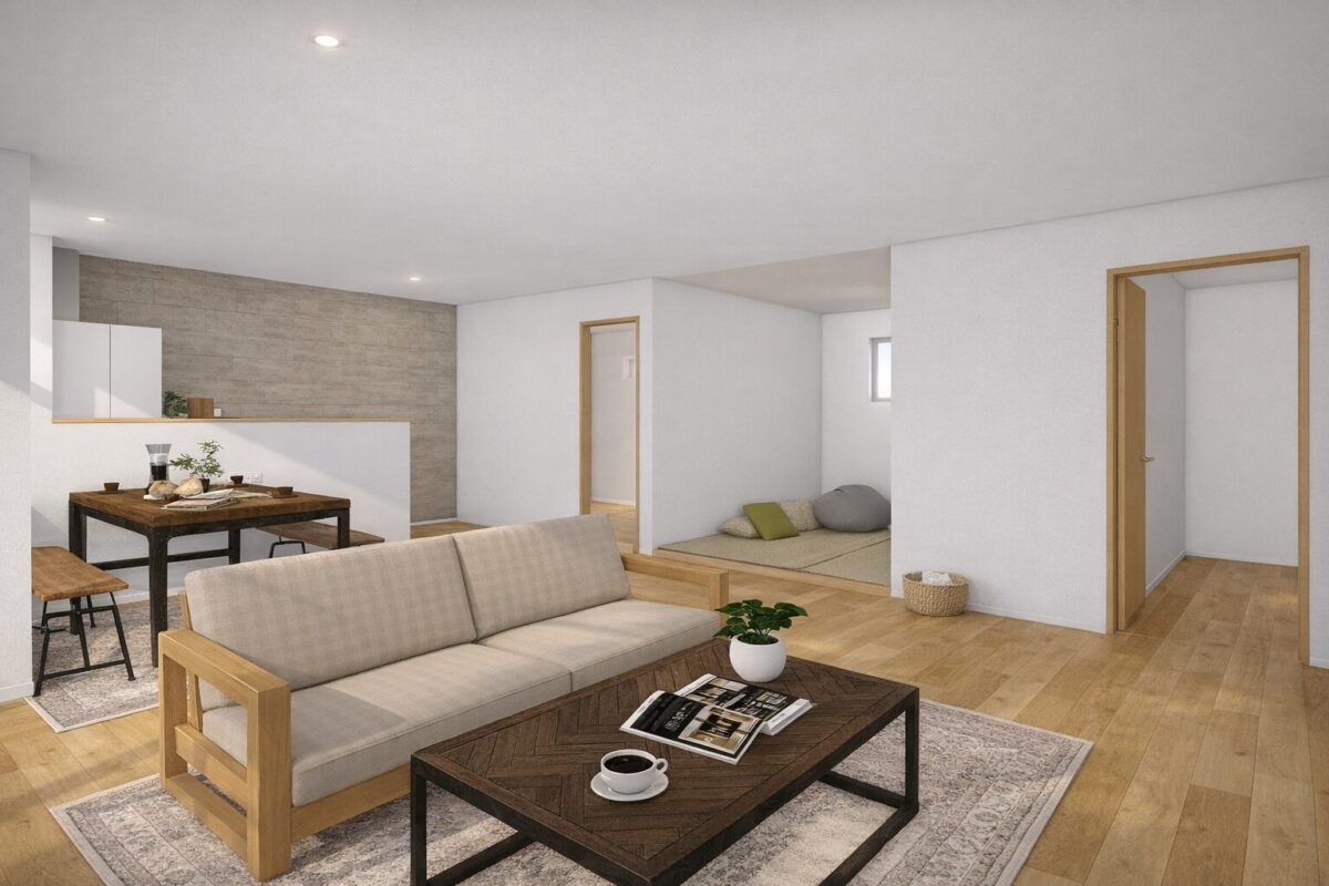 広がりを感じる空間設計で、家族が自然と集まり、ゆったりとした時間を過ごせます。