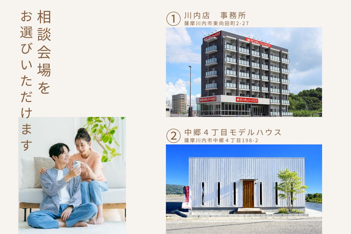 「川内店事務所」と「中郷モデルハウス」から、お好きな会場をお選びいただけます。