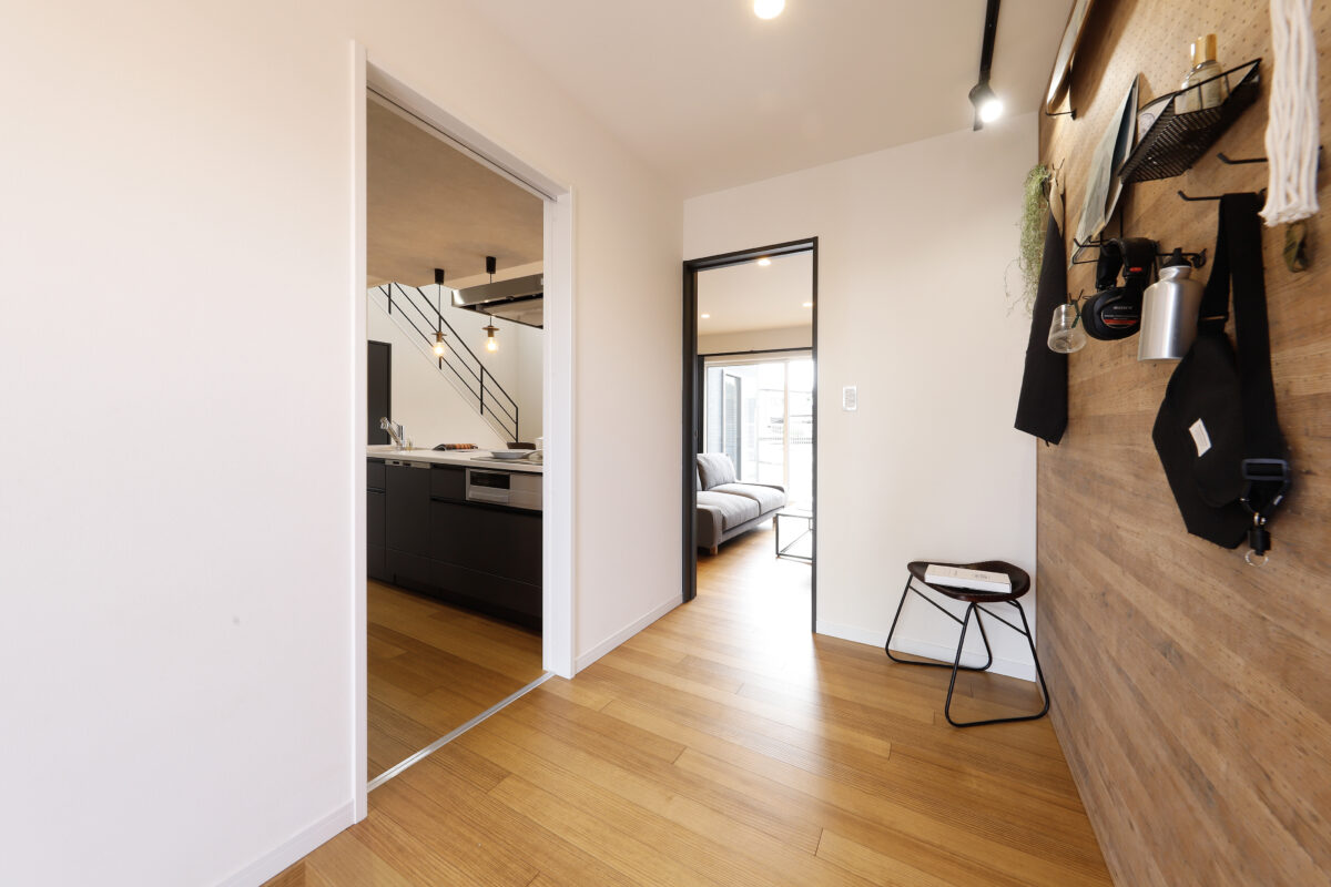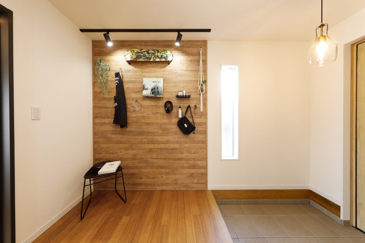 入った瞬間広いと感じる玄関ホール・有孔ボードでカッコよく見せる収納!