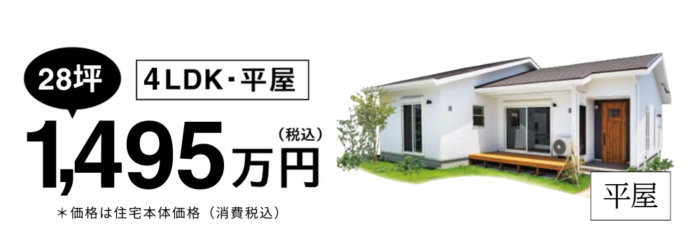 2LDK 1,188万円(税込)から。デザインも、間取りも、性能も、あなたのこだわりを詰め込んだ理想の平屋を実現します。