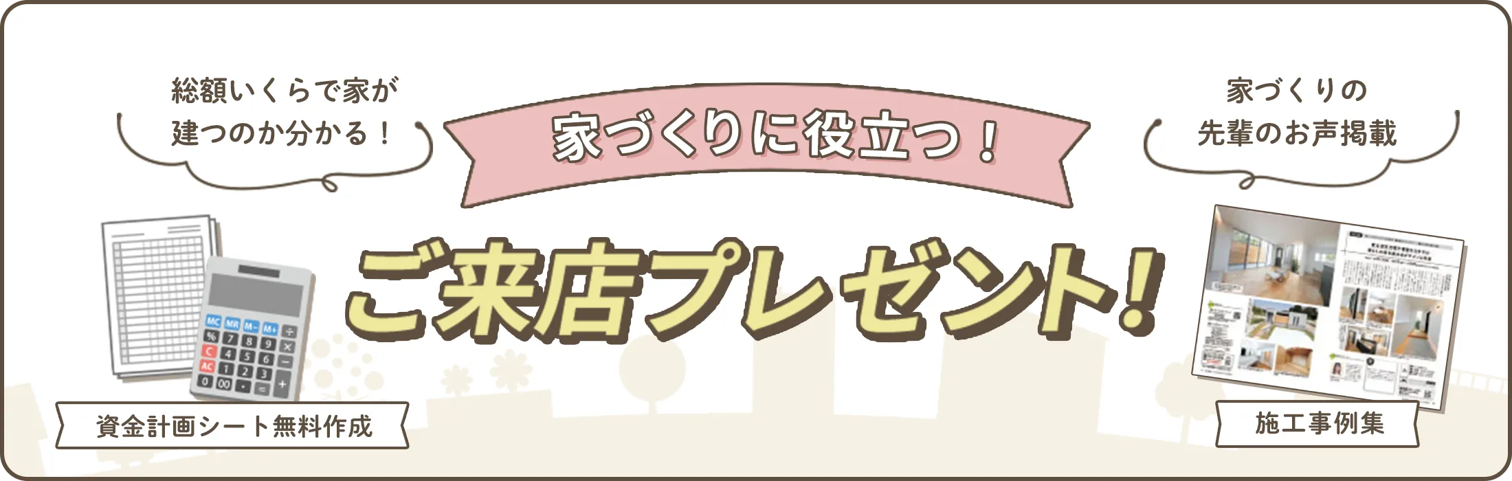 「この家はどのくらいの広さ?」「このプランでいくら?」などを実際にモデルハウスをご覧いただきながらご説明も可能です。お近くの店舗でご相談ください。