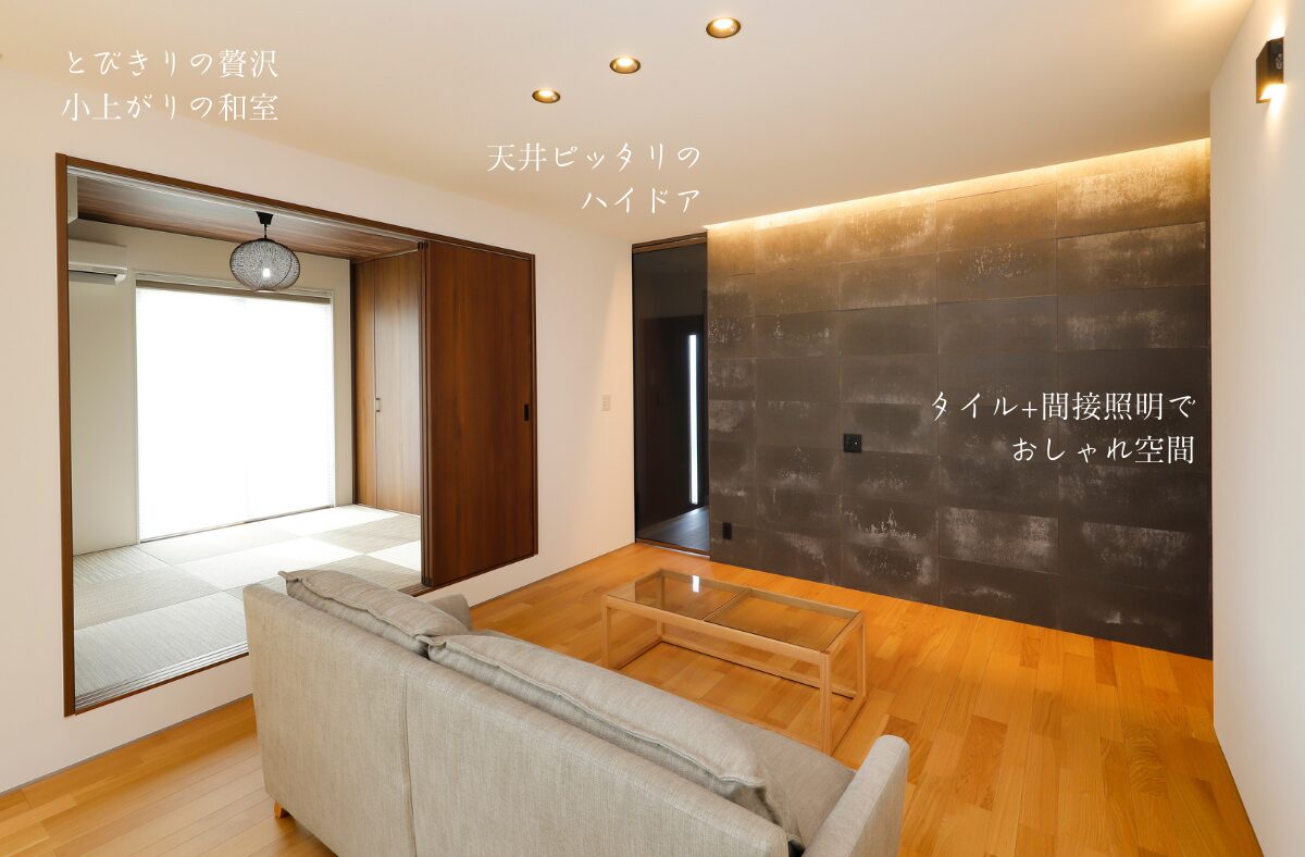 LDKにゆるやかにつながる小上がり和室は、客間にもくつろぎにも、