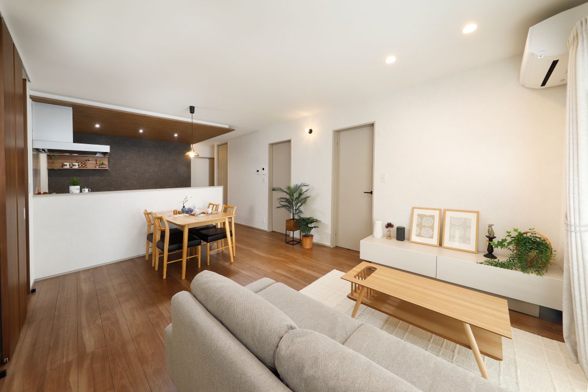 リビング・ダイニング・キッチンがひと続きになった、心地よい空間。