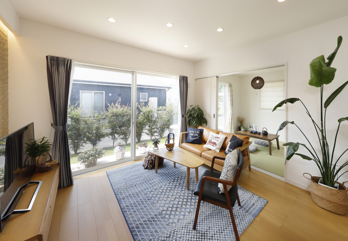おおきな掃き出し窓をを用いて、ウチとソトを直接行き来できます。