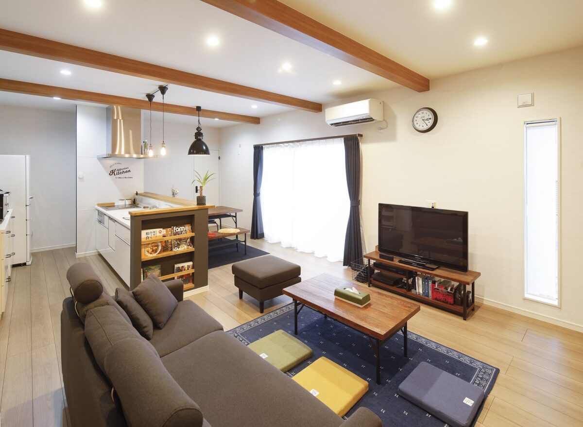 キッチンからリビング、ダイニングまでが一直線に見渡せるフルフラットな空間作りがされています。