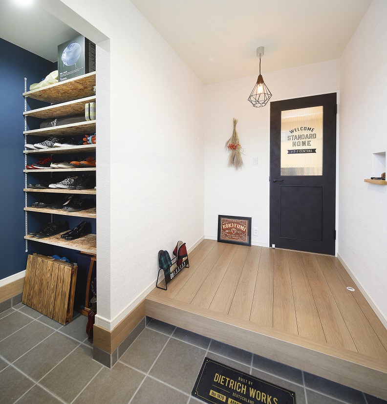 玄関をスッキリとさせることができる収納も兼ねたシューズクローク。