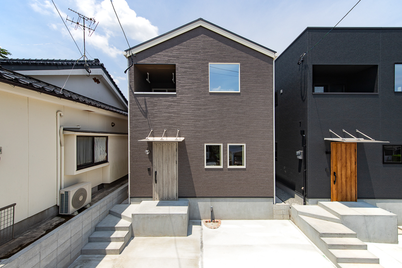 グレイッシュカラーと三角屋根が落ち着いた印象に。毎日帰るたびに、少し気持ちが整う外観です。
