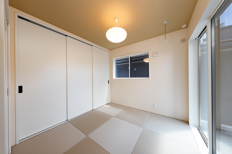 やわらかな照明とシンプルな畳が落ち着きを演出。収納も充実し、くつろぎと実用性を両立しています。